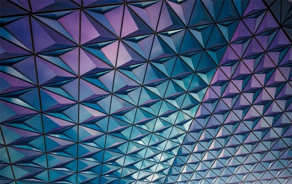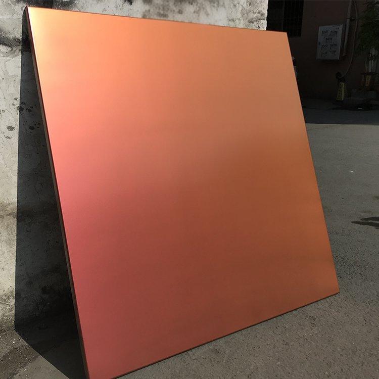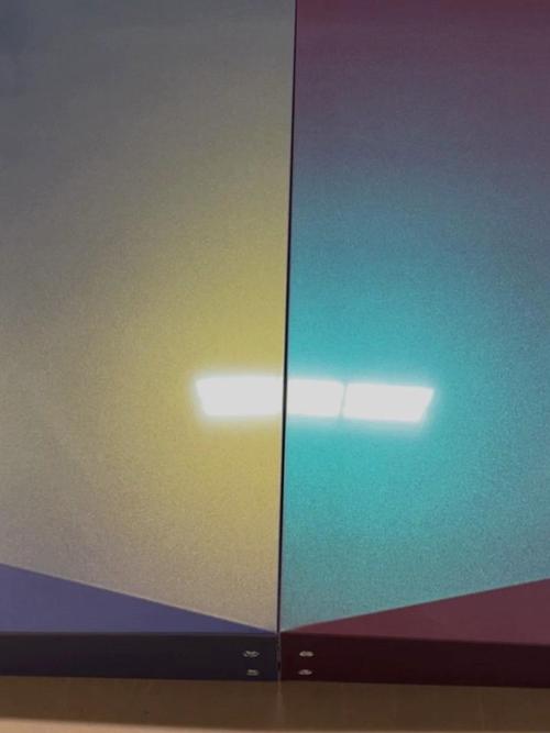 辊涂的铝卷表面光滑细腻,变色涂层厚度均匀,从而将光线通过反射、折射、衍射幻化出大自然中五彩斑斓的奇妙色彩,从不同角度看会呈现出不同的色彩和光泽。