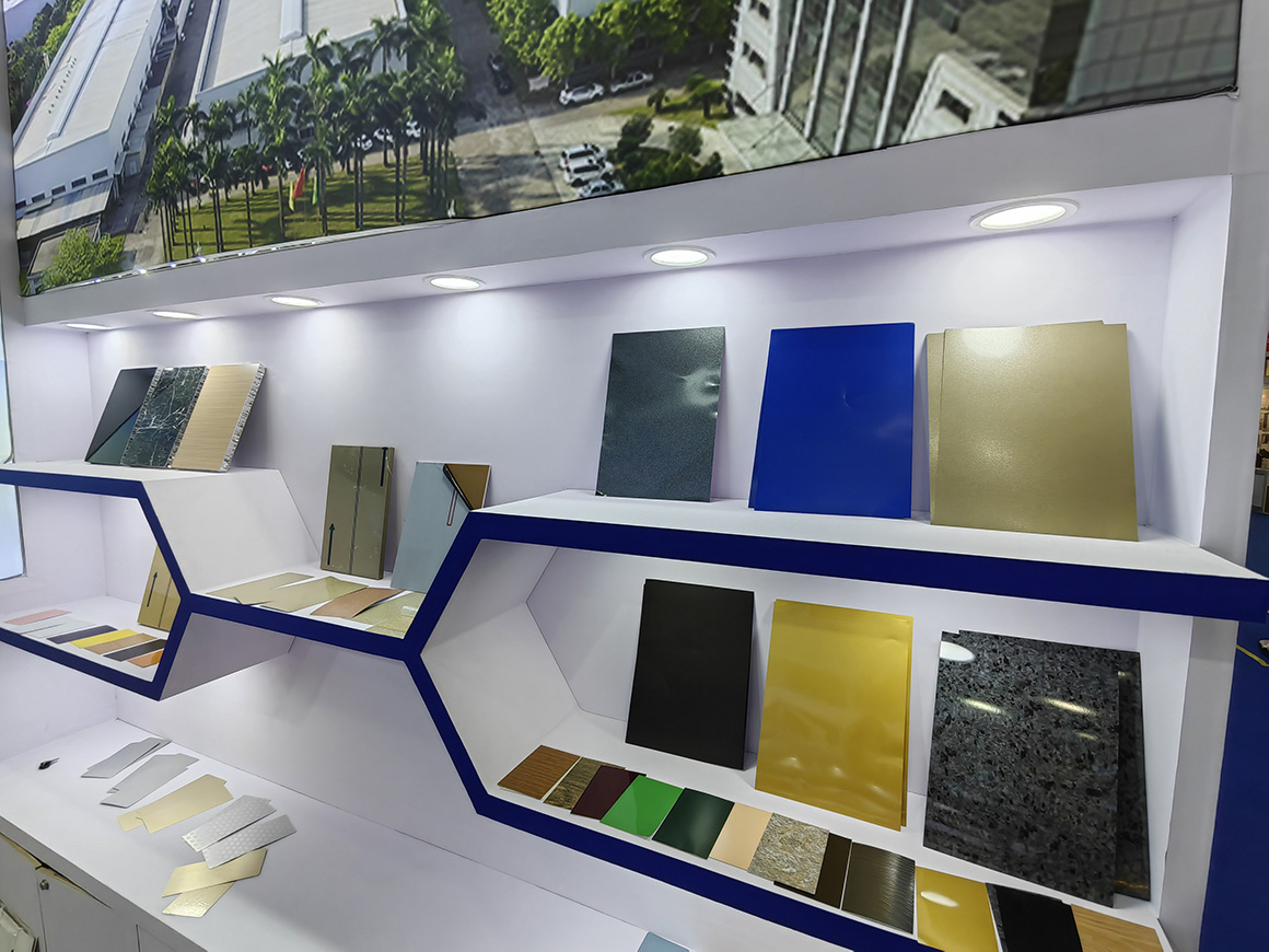 本次展会,力同铝业聚焦带来了多样彩涂铝卷系列产品。3D立体同步木纹/石纹铝蜂窝板带来视觉与质感的双重升级;漫反射、肤感、抗菌等功能型彩涂铝卷精准匹配建筑装饰与全铝家居场景;可定制宽度1600mm以内、厚度0.03-1.5mm的灵活生产能力;产品可加工成铝塑板、铝蜂窝板、金属屋面板、卷帘门窗等用途,让不少建筑采购商驻足细询。