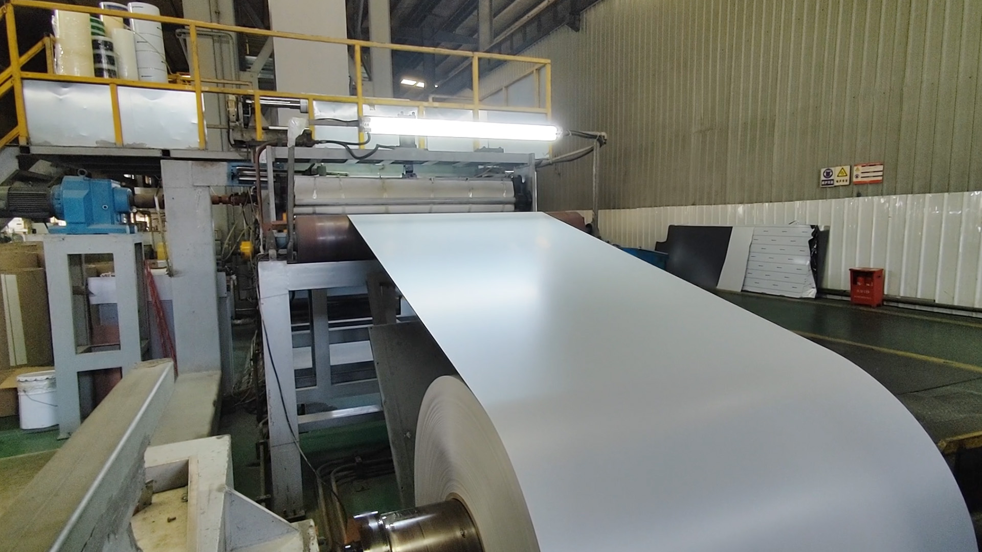 漫反射彩涂铝卷的神奇之处,藏在辊涂工艺里。铝卷生产时,采用具有漫反射功能的特殊涂料,通过特殊辊涂工艺,搭配纳米级微小颗粒技术,将涂料涂覆在铝卷表面,形成微小的凹凸不平结构,让直射的光线朝四面八方均匀散射。